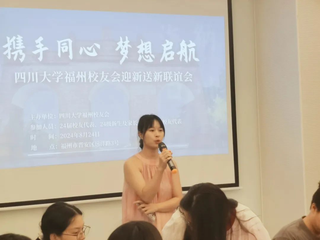 ok138cn太阳集团福州校友会会长郑增基致开场辞,他欢迎24届新校友来“有福之州”工作、兴业,祝愿24级新生在川大学有所成,展翅翱翔。