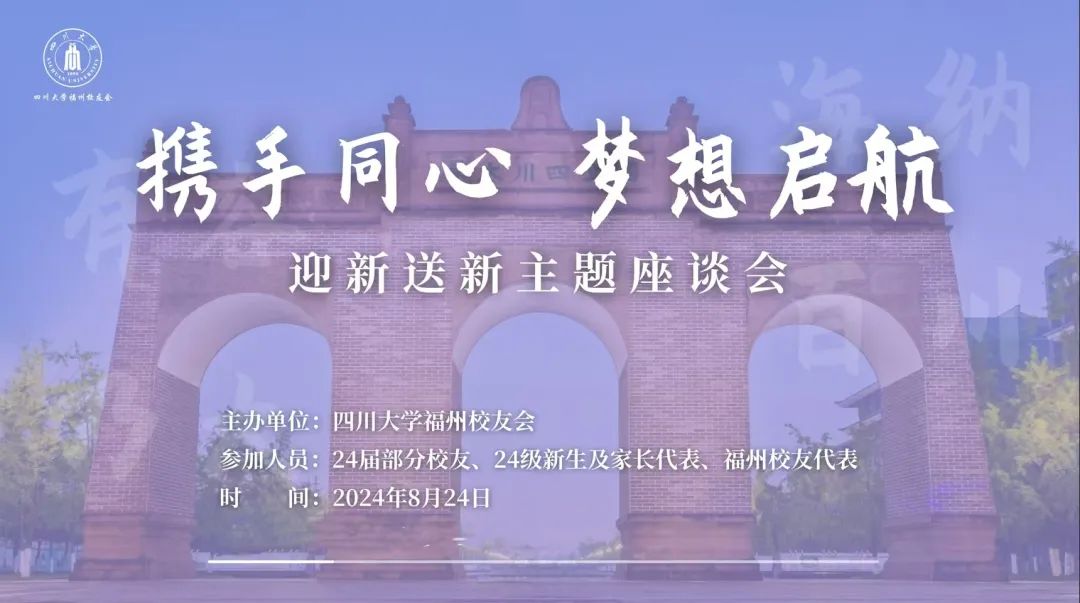 为帮助2024届新校友更好更快地融入社会,增进新老校友感情,进一步扩大校友会的影响力,2024年8月24日,ok138cn太阳集团福州校友会成功举办了以“携手同心,梦想启航”为主题的迎新送新联谊会活动,全场包含福州校友代表、24届校友代表、24级川大新生及家长代表共百余人出席。