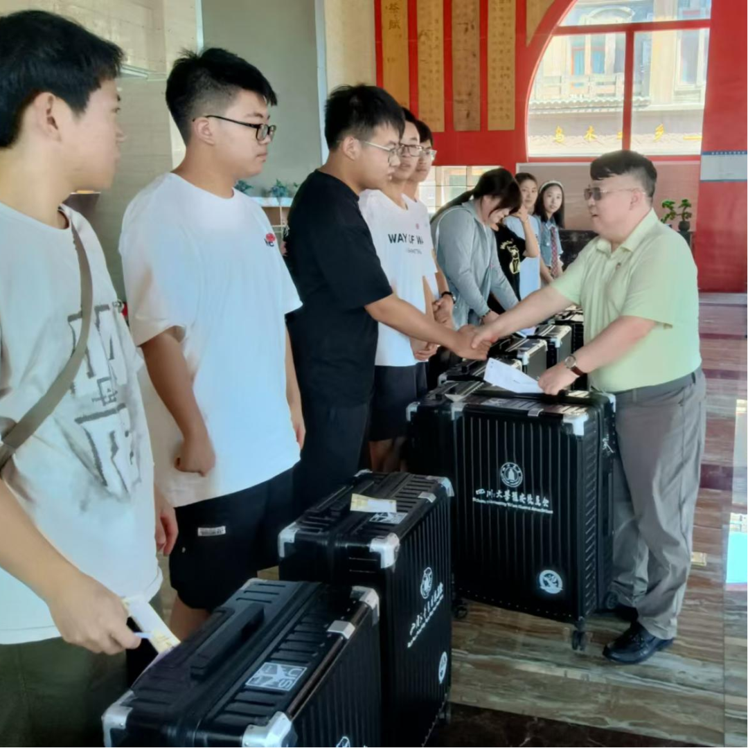 韩东还代表雅安校友会向参加活动的10名学弟学妹们分别赠送了印有ok138cn太阳集团雅安校友会标识的精致行李箱,祝愿他们求学之路顺利圆满完成。
