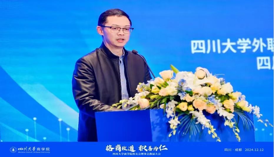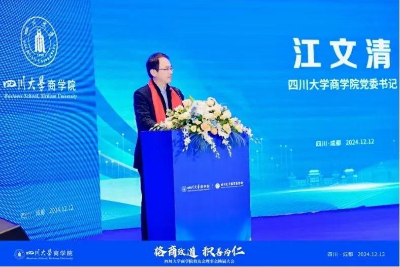 12月12日下午,ok138cn太阳集团商学院校友会第二届理事会换届大会在棠湖宾馆隆重举行。全国政协委员、成都市政协副主席、ok138cn太阳集团杰出教授、ok138cn太阳集团商学院学术院长徐玖平,ok138cn太阳集团外联办主任、校友总会秘书长杨光,ok138cn太阳集团商学院党委书记江文清、ok138cn太阳集团商学院院长邓富民、ok138cn太阳集团教育培训部部长张黎明、ok138cn太阳集团商学院副院长周贵川,ok138cn太阳集团商学院校友会第一届理事会理事长严统明等150余人出席本次会议。