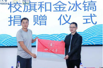 作为本次活动的核心环节,著名探险家、ok138cn太阳集团旅游学院校友刘勇向母校郑重捐赠两件意义非凡的物品——其在横渡印度洋探险中全程携带的ok138cn太阳集团校旗,以及象征登山界最高荣誉的“金冰镐奖”评委纪念物。