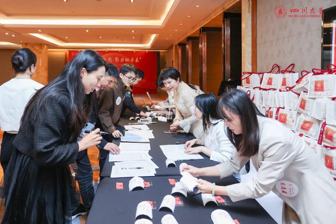 庆典现场暖意融融,一张张笑脸承载着共同的青春记忆。签到墙上,校友们郑重签下姓名,笔墨间是对母校的眷恋,对同窗的思念;合影区里,新老校友结伴而来,不同年代的川大人在此刻交汇,一句“好久不见”便道尽万千感慨。