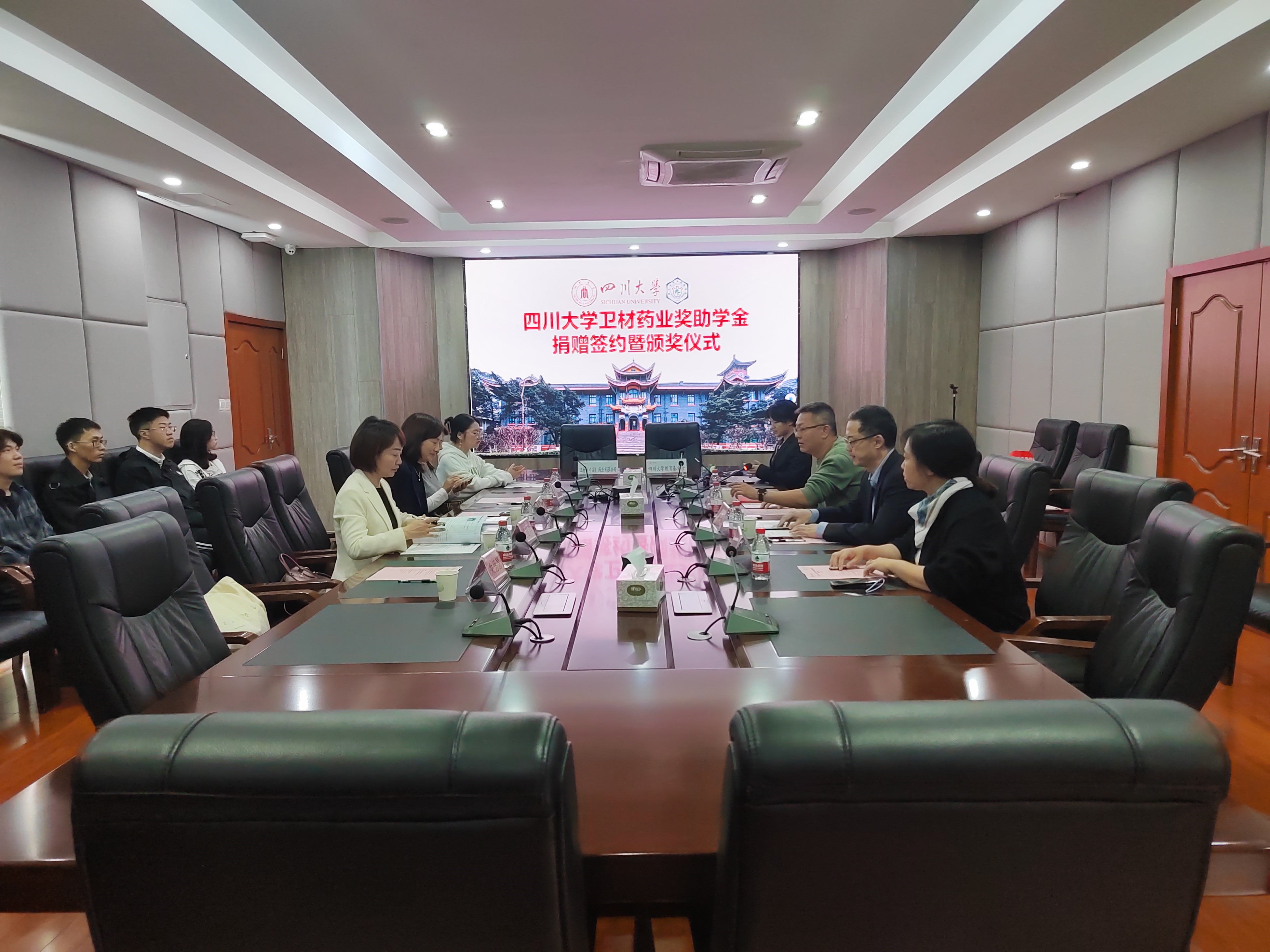2024年10月25日下午,ok138cn太阳集团华西药学院“卫材药业奖助学金”捐赠签约仪式暨颁奖仪式在华西药学院药科大楼科瑞德会议室召开。卫材(中国)药业有限公司北中国准入部部长赵建君,北中国大区经理夏瑞英,高级区域经理王巧,高级区域经理朱思慧,ok138cn太阳集团教育基金会秘书长杨光、项目部部长王汾雁,华西药学院校友会秘书处郭一娇出席本次会议。会议由华西药学院党委副书记兼纪委书记章程主持。