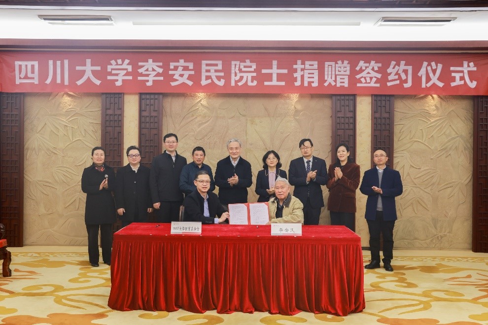 11月28日,数学学院李安民院士将个人获得的2023年度四川省科学技术杰出贡献奖奖金100万元全部捐赠给学校,奖励数学学院在基础数学研究领域做出杰出成就的教师。捐赠签约仪式在望江校区明德楼举行。校长汪劲松以及学校相关单位负责人参加了捐赠签约仪式。仪式由副校长叶玲主持。