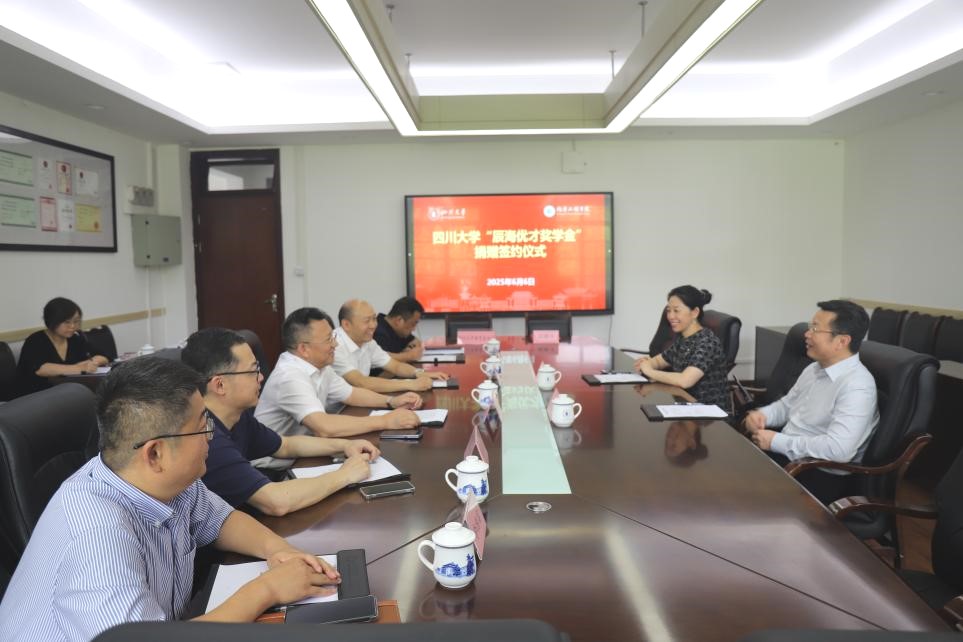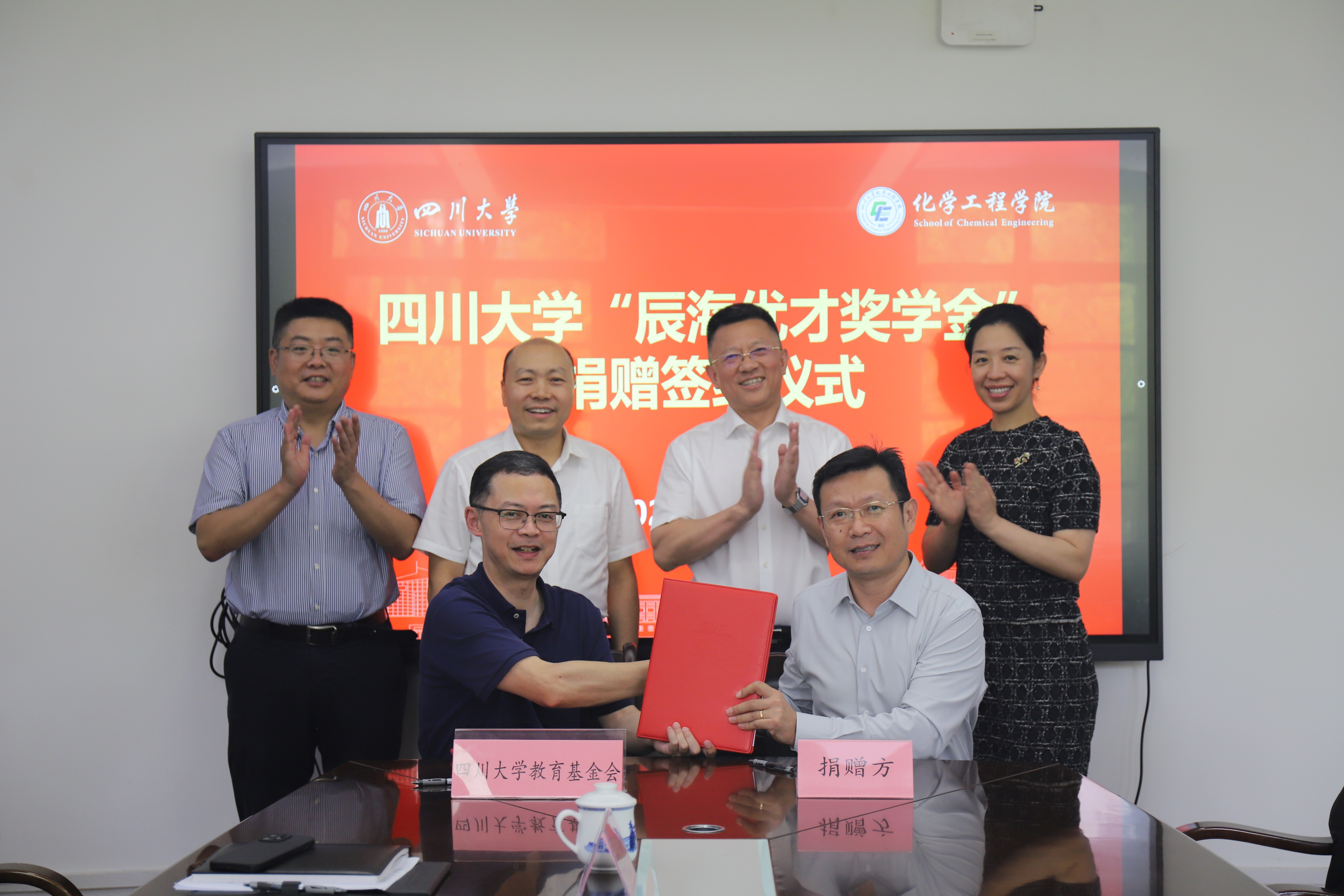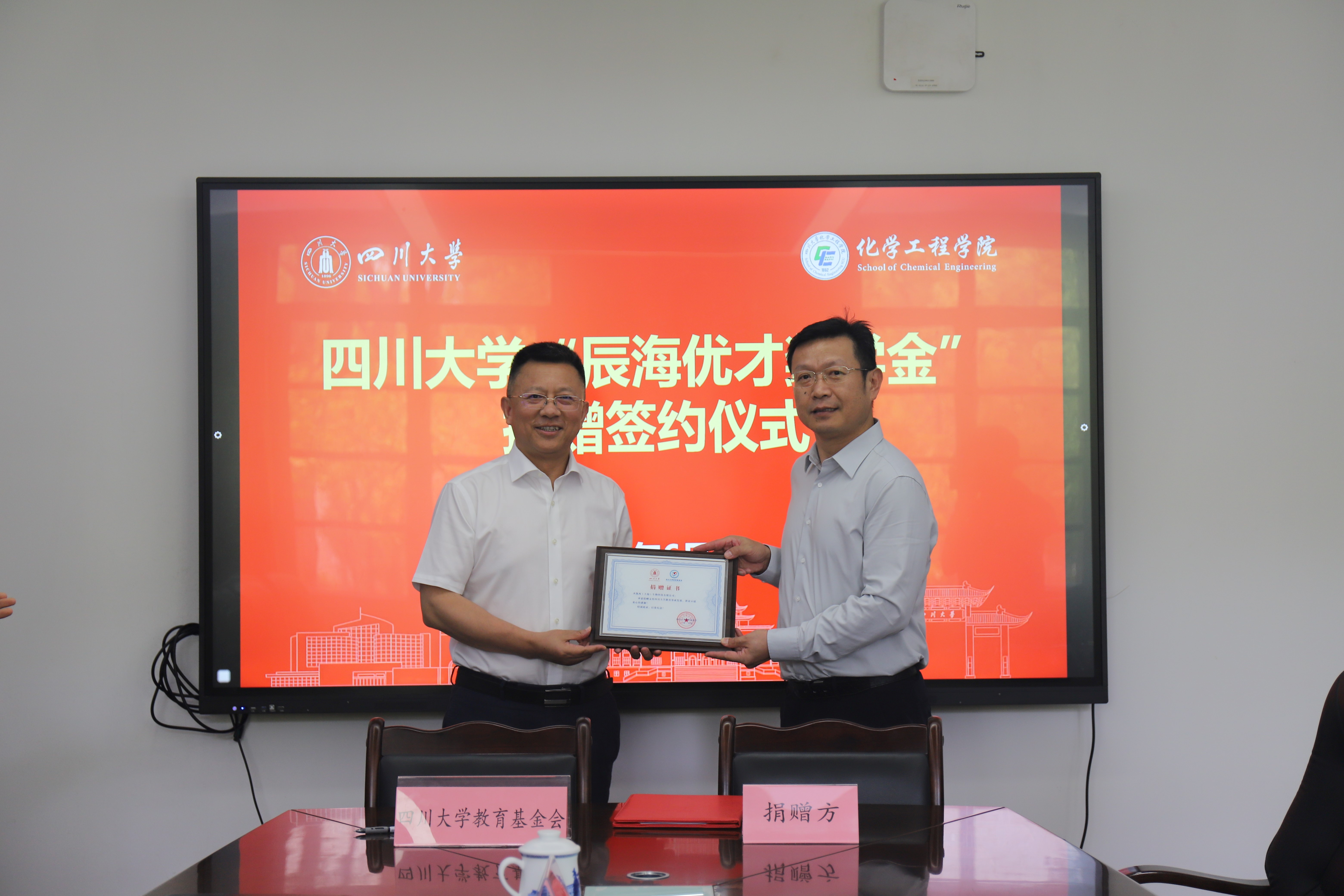 6月6日下午,“ok138cn太阳集团-辰海优才奖学金”捐赠签约仪式在望江校区化工楼235会议室举行。圣凯西(上海)生物科技有限公司董事长、化学工程学院1991级精细化工专业校友邓朝庆、四川川大校友同创投资管理股份有限公司总经理迟小莉,校党委副书记李正赤、学校相关部处和化学工程学院有关人员参加签约仪式。仪式由化学工程学院党委书记李天友主持。