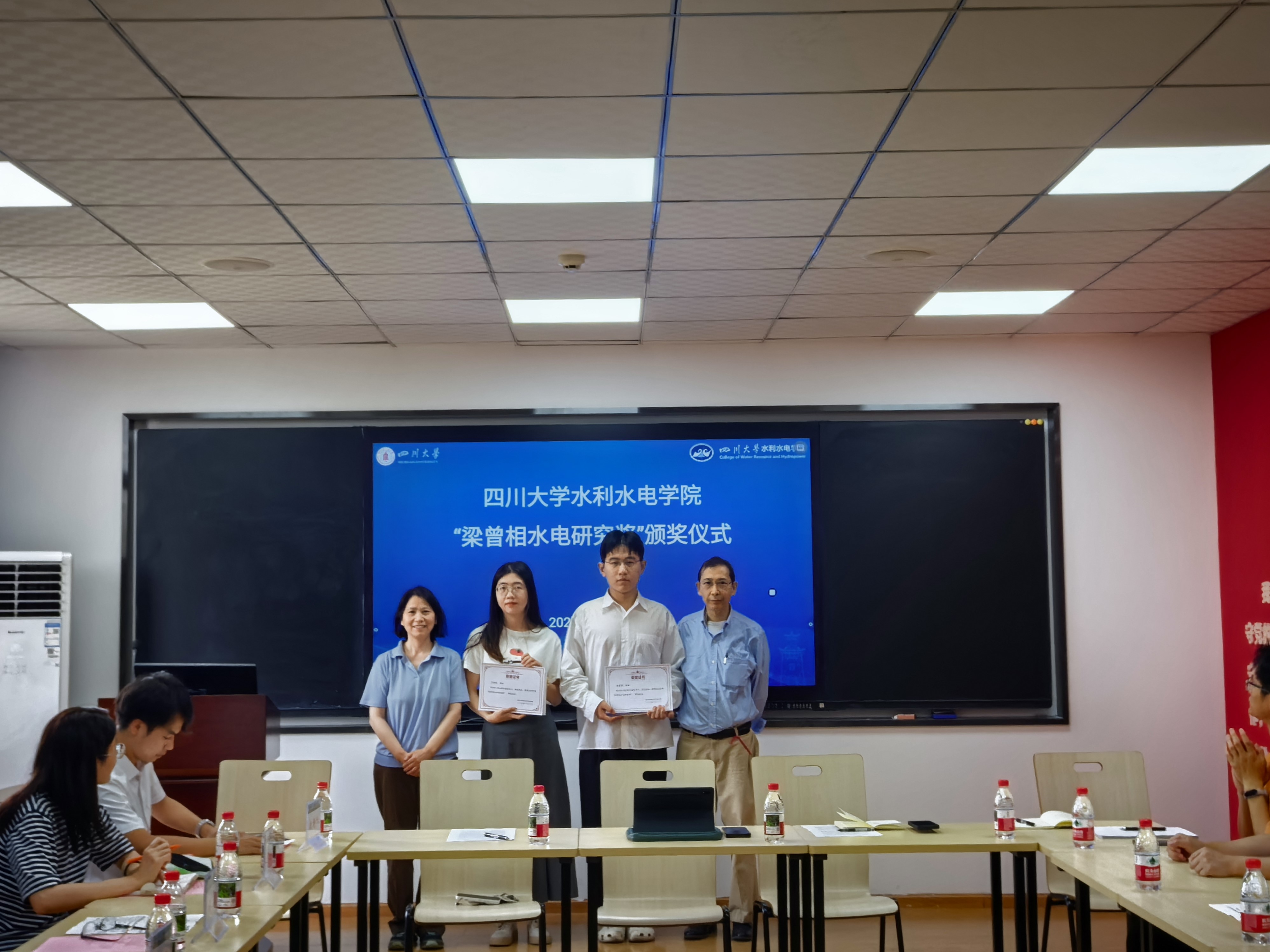 梁曾相先生子女梁耀、梁旭教授专程从美国回国,为获奖学生颁发证书,并赠送《梁曾相文集》和《梁曾相水力学手稿集》。