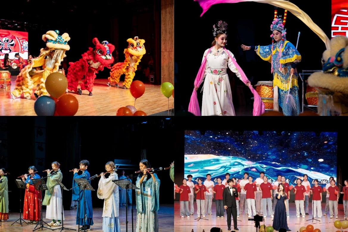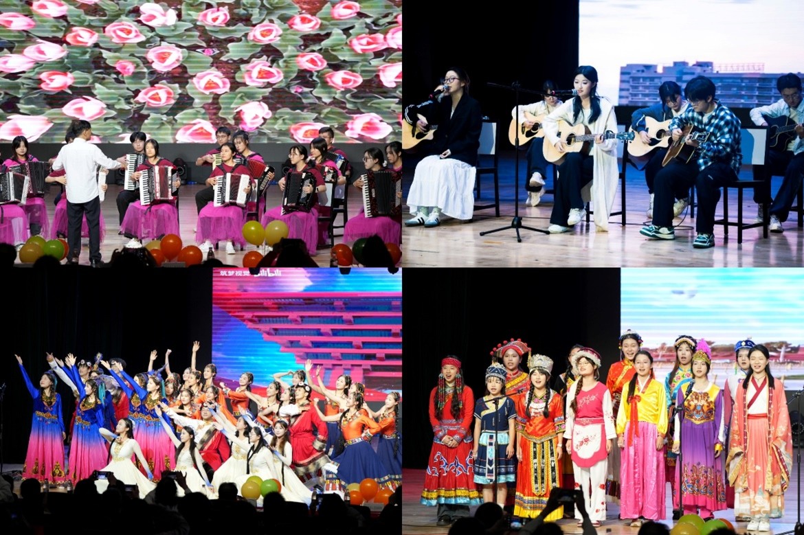 传统器乐与声乐篇章同样精彩迭出。古琴演奏空灵悠远,竹笛旋律悠扬婉转,24式太极拳表演沉稳舒展,每一个动作、每一段旋律都传递着中华传统文化的平和与力量;江安声乐班带来的合唱《明天会更好》,以清亮歌声寄托对未来的美好期许。此外,展演更融入多元现代元素:中外学员携手演绎的英语合唱《Heal the World》传递跨文化温情,街舞表演的动感节奏、吉他弹唱的青春旋律、小提琴演奏的动人乐章,尽显学员们宽广的艺术视野与多元创造力,完美诠释“传统为根、现代为翼”的美育理念。
