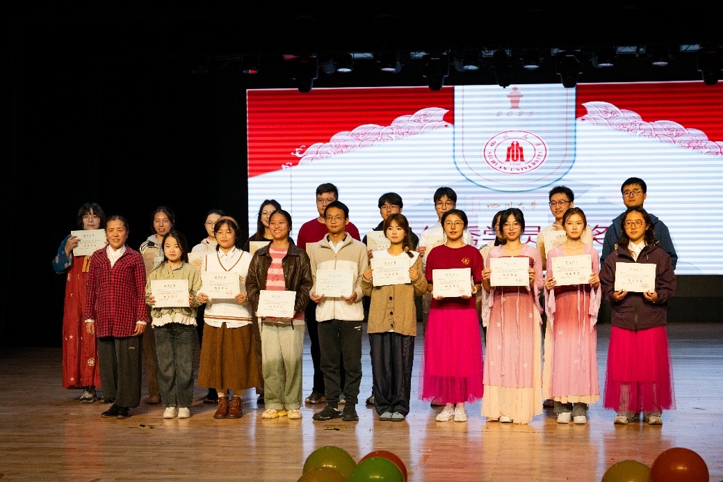 10月24日晚,学工部在江安校区艺术学院小剧场举行了“明远·启航”大学生能力提升计划第十四期总结大会暨第十五期开班仪式。学校相关单位工作负责人、学生教导员、课程教师、企业代表,以及400余名同学齐聚一堂,共赴这场融合非遗文化与美育精神的青春盛会。活动由主持与表达课程学员陈泽萱、张子豪以及从会说到慧说课程学员刘海姣、文志宁主持。