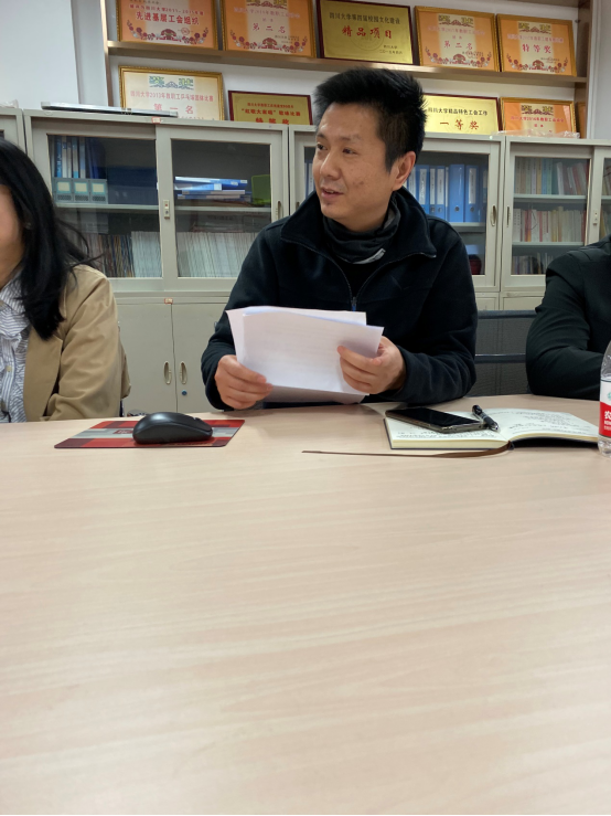 然后,由杨彬同志为大家分享,他代表外联办支部参加机关党委微党课活动取得优胜奖,得到领导和老师都一致好评的心得。杨彬同志围绕微党课的主题——脱贫攻坚是什么、怎么做、干得如何?川大定点扶贫干得如何?老百姓得到了什么?我经历了什么——向大家做了交流。荣建国同志称杨彬同志真正有不忘初心、牢记使命的责任担当,他的扶贫工作体现了党员的先锋模范作用和支部的战斗堡垒作用。