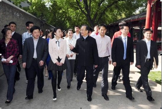 2011年的“五四”青年节前夕,贺明智入选20位首都优秀青年代表,于5月3日受到中共中央政治局常委、国务院总理温家宝的亲切接见,在中南海进行座谈,共话青年成才之路。总理兴致勃勃地带领大家参观了中南海西花厅,之后步行前往中南海小礼堂与代表进行座谈。座谈过程中,贺明智汇报了工作情况,并针对高校教育问题向总理提出诚恳的建议。 |