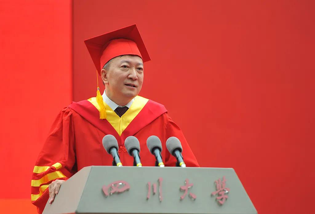 典礼上,校长李言荣作了题为《如何在复杂的世界中把握自己的未来》的讲话,寄语川大2020届毕业生们:世界越是复杂多变,就越需要尽快打开视野和开拓眼界;事情越是千头万绪,就越需要保持专注和追求卓越;情况越是盘根错节,就越需要三言两语能把事物的本质规律给总结出来。