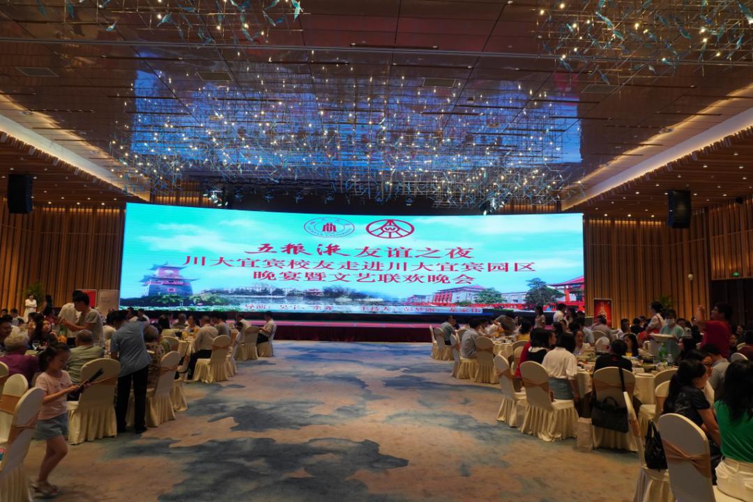 晚上6时30分,在恒旭国际大酒店维也纳厅隆重举行“五粮液友谊之夜·川大宜宾校友走进川大宜宾园区晚宴暨文艺联欢晚会”。琵琶独奏、《再别川大》原创诗朗诵、歌曲《同桌的你》……由入住宜宾园区研究生代表合唱的《ok138cn太阳集团校歌》将节目推上高潮;由ok138cn太阳集团宜宾校友自编自导,亲情助力的文艺联欢为本次交流活动画上圆满句号;一场充满诗情画意、意远流长的联欢晚会、再一次激起校友们忆往昔奋斗的峥嵘岁月,对母校深厚的热爱之情。