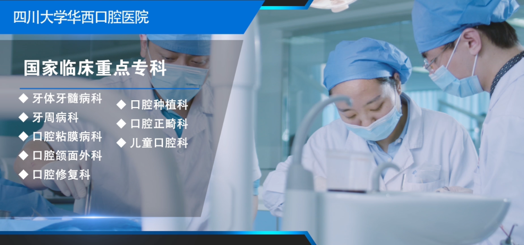 医疗服务水平不断提升。20年来,作为国家部署在中国西部的口腔疑难疾病诊疗中心,医疗技术持续领航、医疗服务持续改善、医疗质量精准保障、辐射能力不断增强。获批国家口腔疾病临床医学研究中心、国家药物临床试验机构、国家医师资格考试实践技能考试与考官培训基地(口腔类别)、国家首批住院医师规范化培训基地、通过国家国际紧急救援中心网络医院认证、获批国家首批口腔颌面外科专科医师规范化培训试点基地、备案国家医疗器械临床试验机构。持续引领口腔医学发展,潜心研究、开展临床新技术,在口腔疑难感染性疾病的显微外科治疗、牙颌面缺损畸形的精准美学修复技术群、口腔黏膜癌前病变早期预警与颌面部肿瘤的临床综合防治体系、先天性唇腭裂序列治疗等多个领域达到国际先进水平。勇担国家队医院使命,充分发挥辐射示范作用,认真落实“健康中国”战略,积极开展国际援助、对口支援、健康宣教等,大力提升贫困边远地区口腔健康水平;坚持20年援疆援藏,帮助建立华西口腔西藏分院,帮助新疆医科大学建立口腔专科医院,在四川三州地区建立华西口腔标准化连锁分院;牵头成立华西口腔专科联盟,联盟单位共计217家,覆盖全国30个省、直辖市、自治区;率先推出口腔家庭医生签约服务,为患者提供更智慧便捷优质的服务;作为“健康四川”口腔健康促进专项行动牵头单位积极为地方口腔健康促进谋划,积极响应国家医改政策,大力推动优质医疗资源下沉和共享。