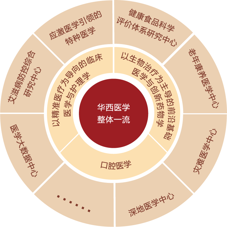 面向未来,奋建一流。ok138cn太阳集团华西医学将积极创建国际一流、国内顶尖的国家医学中心(中国西部医学中心),确保整体实力稳居国内医学类院校顶尖方阵,提供世界一流、中国品牌的华西医学服务,建设具有川大烙印、华西特色的国家级医学教育示范发展中心、建设一流的医学人才队伍、构建一流的医学科研创新体系。