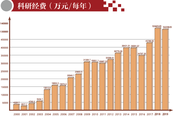 学校坚持面向世界科技前沿、面向国家重大需求,面向国民经济主战场,鼓励自由探索、鼓励交叉融合,建成一批颠覆性创新和变革性技术研发平台,产生了一批重大原创理论和技术成果。现有国家重大科技基础设施1个,国家重点实验室2个,国家临床医学研究中心2个,国家地方联合工程实验室1个,国家国际科技合作基地1个,教育部前沿科学中心1个,国家卫生健康委员会重点实验室2个。获准国家首批“2011计划”协同创新中心和创新药物关键核心技术集成攻关大平台。2000年以来,学校共获国家科技三大奖5项。主办高水平英文杂志6本。2019年,科研经费达13.3亿元。