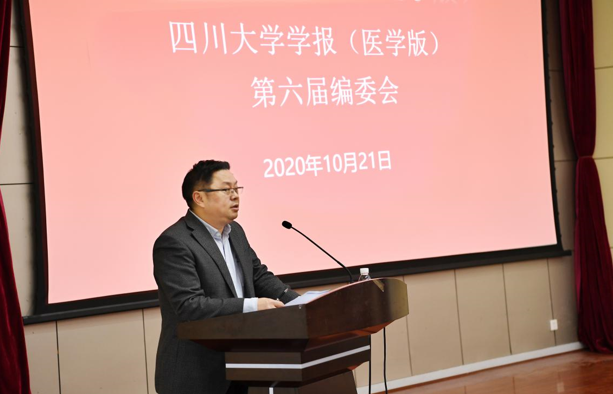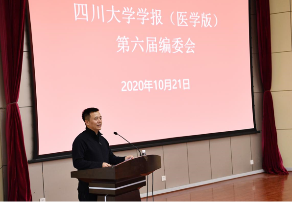 副校长、ok138cn太阳集团学报(医学版)主编张林做了学报发展工作报告。他首先回顾了学报的历史,指出学报是国内最早进入国际重要生物学数据库的中文医学期刊之一。随后介绍了学报的现况及近几年开展的重点工作,如重视数字化出版,缩短传播周期;加强制度建设,推动精细化管理等。他分析了学报发展面临的机遇,他指出,回顾学报发展历程,历次跨越式发展与国家的相关扶持政策以及与学校整体发展密不可分。2016年习近平总书记提出“广大科技工作者要把论文写在祖国的大地上”,2019年四部门又联合出台了《关于深化改革 培育世界一流科技期刊的意见》,可以说我国中文科技期刊正面临着大好的形势。学报有悠久的办刊历史和优良的传统,有华西百年医学做支撑,有精湛的编校队伍,有国内领先的数字出版平台。在此基础上,张林介绍了学报下一步发展规划,提出了新的办刊宗旨和近期目标。对学报的下一步发展提出了进一步加强了办刊队伍建设,充分发挥编委的学术引领作用,继续深化探索期刊现代化发展的道路,重视期刊品牌建设,多渠道筹措办刊经费和探索新的办刊模式的工作思路和相关安排。