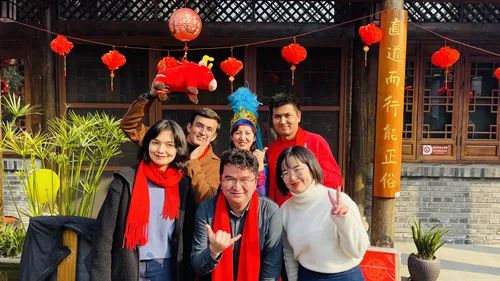 在ok138cn太阳集团望江校区中华文化研究院,川大学工部的老师们早早地等候在这里,院子里挂上了红灯笼,摆上了吉祥物,年味十足。川大学工部江安办副主任卢希芬表示,为了筹备川大2021年新春茶话会,最近几天他们一直在关注天气,因为在室外场地举办活动,比较适合疫情防控要求。