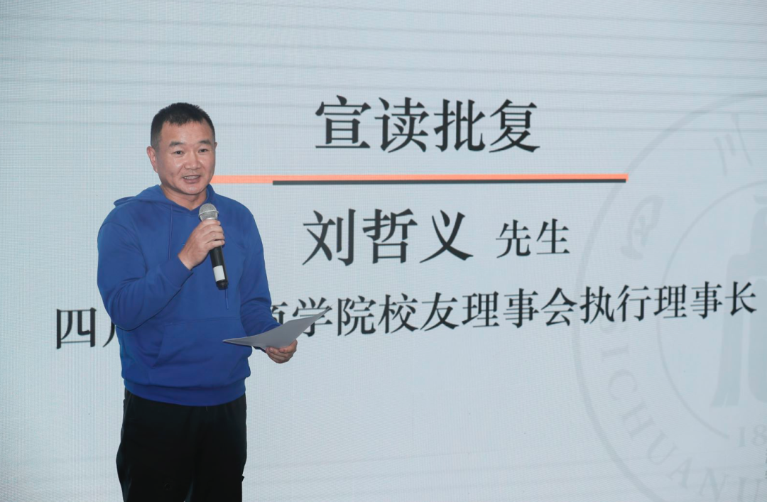 商学院校友理事会执行理事长刘哲义先生宣读了商学院校友理事会的批复。