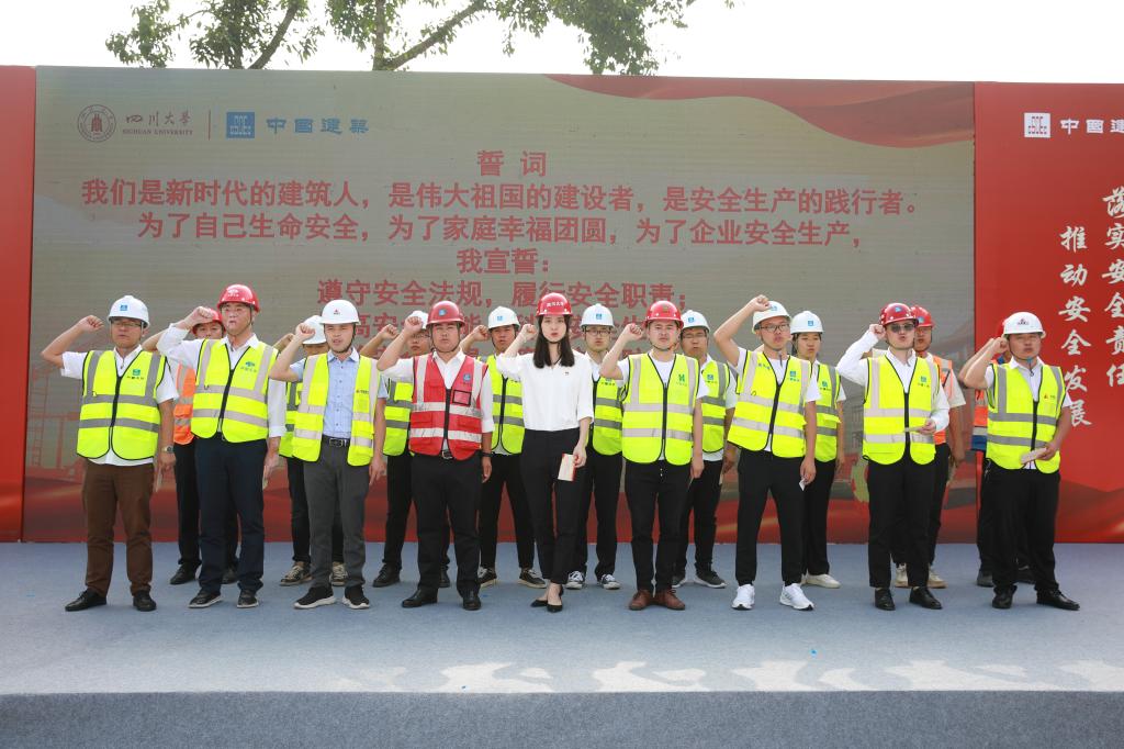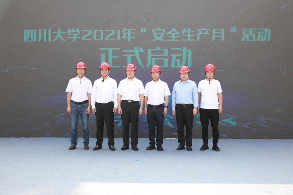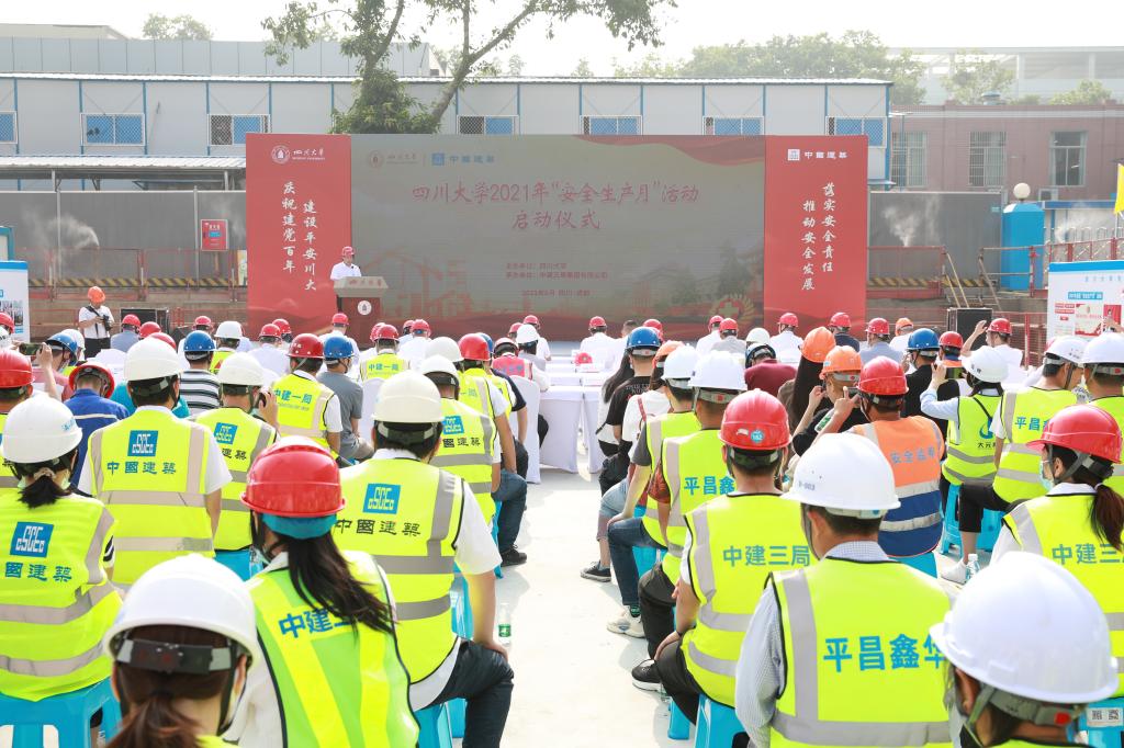 落实安全责任、推动安全发展,建设平安川大、庆祝建党百年。6月10日上午,学校2021年“安全生产月”活动启动仪式在先进材料科研大楼施工现场举行。副校长侯太平,校党委副书记郭勇,成都市住房和城乡建设局副局长陈科,中建三局副总经理、西南分局局长唐浩,中建三局西南公司董事长宋芃,市区有关部门负责人、学校在建项目参建单位和学校相关单位负责人参加启动仪式。