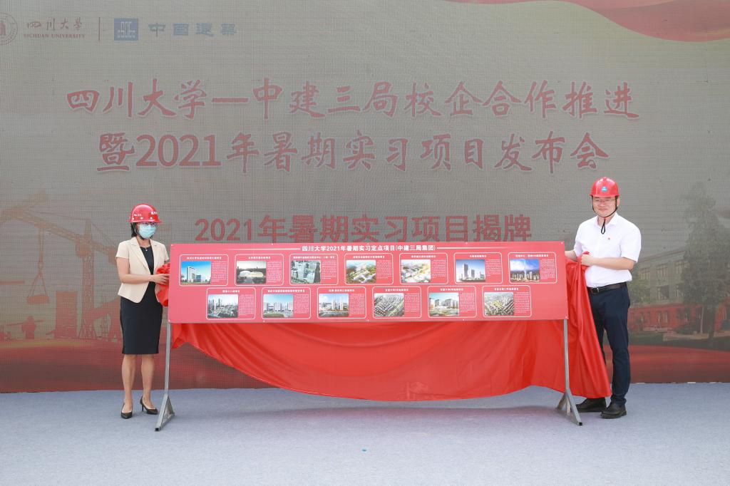 启动仪式后,举行了ok138cn太阳集团—中建三局校企合作推进暨2021年暑期实习项目发布会。会议简要回顾了双方合作历程,并围绕实习项目、实操进课堂、课题研究合作等方面介绍了校企合作推进方案。学校就业指导中心与中建三局西南公司负责人为13个2021年暑期实习项目揭牌。