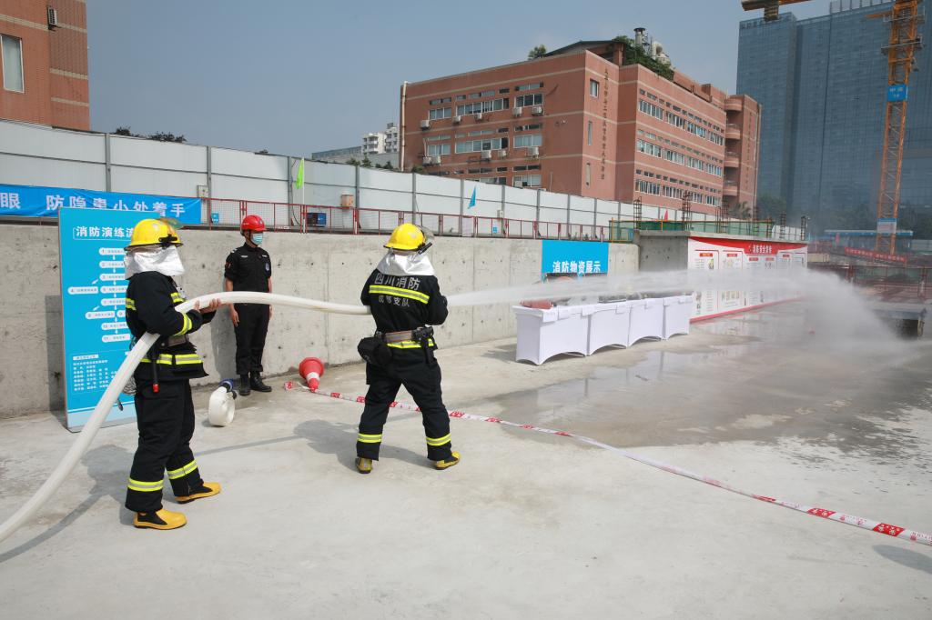 会后,为提高全体施工人员的安全意识和安全技能,先进材料科研大楼项目部全体人员、施工班组部分作业人员参加了安全生产消防应急演练。