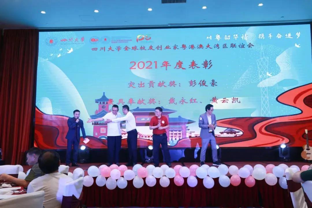 在晚上举行的ok138cn太阳集团广州校友会十六周年庆典上,湾创联对新晋会员(郭孔快副会长、丁露理事)进行了授牌,并对湾创联作出贡献的理事会员进行表彰,其中彭俊豪校友获得突出贡献奖,戴永红教授、黄云凯常务副会长活动最具奉献奖。
