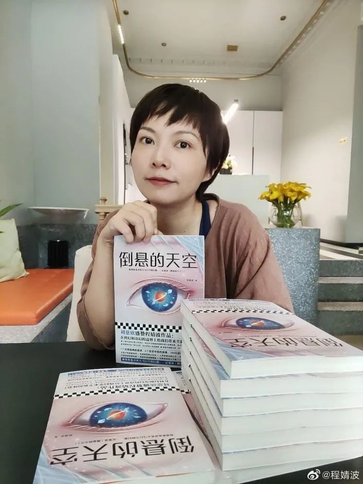 2020年6月,幻想小说集《倒悬的天空》出版,图书的封面上印刷着一只蓝色的瞳孔,眼眸中映射着璀璨的星河,一如这本精选集背后那个鬼马精灵的科幻作家——程婧波。