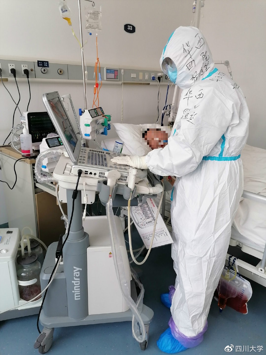 然而情况还在恶化,和华西的同事们进行远程视频会诊后,团队决定给病人进行“气管插管”。插管前,病人拉着杨旭堃的手,轻声地问,自己是不是要死了。微弱的声音生生撞击着杨旭堃的心,他努力向虚弱的病人微笑着,紧紧握住他的手,“放心,会好的,一定会好的。”杨旭堃回忆说,那时自己并没有什么把握,“但我知道,我们要用尽所有手段,一定要救他。”