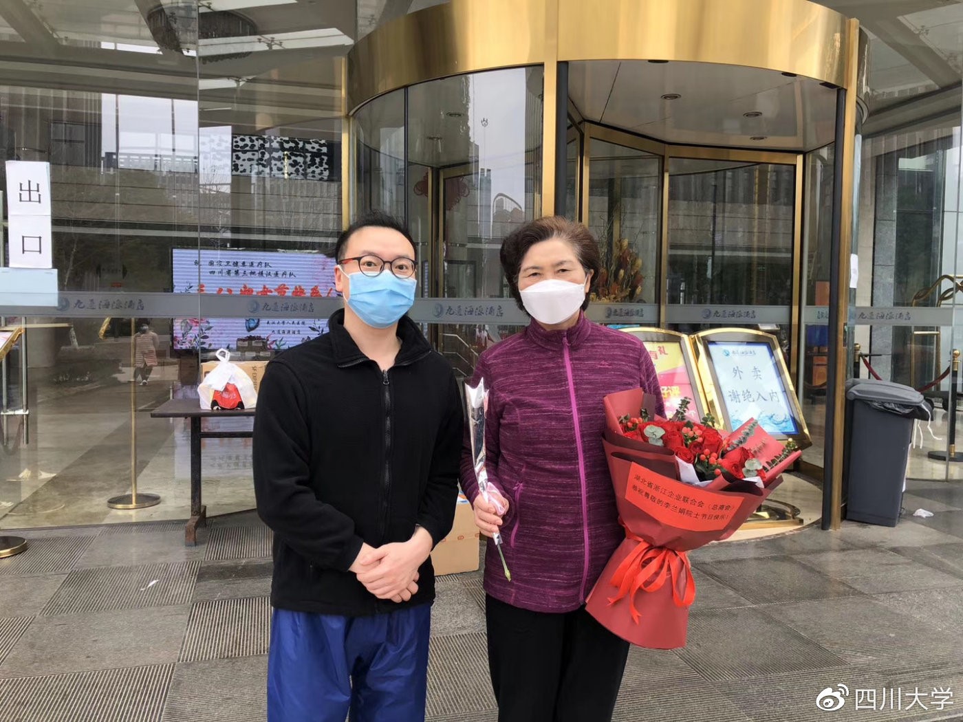隔离期间杨旭堃医生和李兰娟院士合影