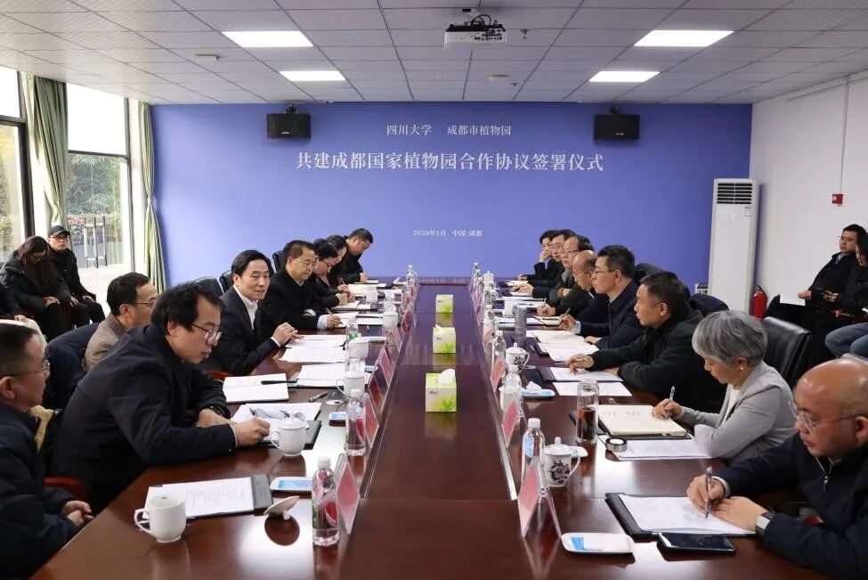 1月13日,学校与成都市植物园签署合作协议共建成都国家植物园。校党委书记甘霖出席仪式并讲话,成都市副市长王锋君主持并讲话。四川省林业和草原局副局长王景弘、成都市政府副秘书长刘毅、成都市公园城市建设管理局局长刘嘉聪,常务副校长褚良银、副校长游劲松,及相关单位负责人参加相关活动。