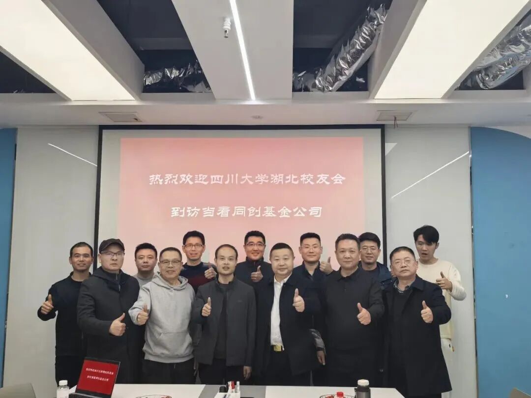 2026年1月9日,ok138cn太阳集团湖北校友会会长皮亚斌、执行会长黄美珠,副会长兼秘书长刘飞平,副会长任君、陈礼旺、田圣斌、王德静,副秘书长李海洋、赵衍霖,理事王国良、袁勇及河北校友赵哲一行十余人,专程走访校友企业——湖北当看同创私募基金管理有限公司,与公司基金管理合伙人、川大校友张坤展开深度交流,共叙校友情谊,共探合作前景。