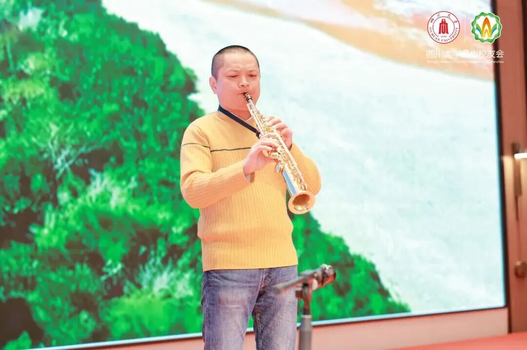 活动下半场,校友夏胜瓯带来萨克斯独奏《永浴爱河》,深情悠扬的旋律寄托着对美好生活的向往,受到大家热烈欢迎。