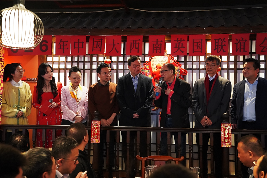 中国驻英国大使馆副主任王滨滨在致辞中代表使馆向中国大西南英国联谊会及各成员侨团致以诚挚问候和新春祝福。他表示,自2007年创办以来,新春火锅联谊活动已走过二十年历程,成为旅英侨胞联络乡情、凝聚侨心的重要平台。一锅热气腾腾的家乡火锅不仅温暖了海外游子的心,也架起了沟通中英、连接乡情的桥梁。王滨滨赞扬旅英川渝云贵侨团长期以来团结服务侨胞、关心支持祖(籍)国发展,在推动中英经贸往来、促进民间交流合作以及弘扬中华优秀传统文化方面所发挥的积极作用,并勉励大家在马年继续发扬龙马精神,奋发进取,积极做中英友谊的民间使者。
