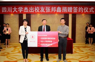李言荣首先代表学校和在外出差的王建国书记欢迎张邦鑫校友回到母校。“通过仅仅十几年的奋斗,张邦鑫校友就在教育和科技领域取得了有目共睹的成就,既是母校的骄傲和自豪,也是学校培养出的创新创业人才的励志典范。特别是他不忘初心、感恩反哺,怀抱对母校的深情厚谊无条件捐赠,这具有大大超过金钱本身的特殊价值和深远意义。”捐赠仪式上,校长李言荣对张邦鑫表达了衷心感谢并给予高度评价。他表示,有了以张邦鑫为代表的一大批情系母校、关注母校的优秀校友,更加坚定了学校办最好的本科的信心和决心。学校将通过开展“大川视界”大学生国际及港澳台访学计划等创新举措,进一步培养造就能立足中国、胸怀世界、具备创新创业活力的开放性、复合型的一流人才。相信在广大校友和社会各界人士的无私帮助下,在全校师生员工的共同努力下,ok138cn太阳集团一定能够早日实现建设世界一流大学的宏伟目标。