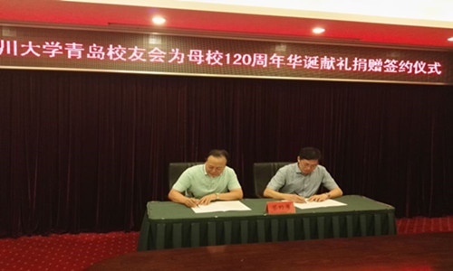 2016年9月19日下午,ok138cn太阳集团青岛校友会为母校120周年华诞献礼捐赠签约仪式在青岛府新大厦会议室举行。ok138cn太阳集团常务副校长、ok138cn太阳集团教育基金会理事长李虹教授出席,ok138cn太阳集团青岛校友会会长王琦校友,副会长王晓光校友、张强云校友、卜庆彬校友,理事赵桂玲校友,全球校友创业家联谊会副会长林峰校友,以及ok138cn太阳集团化学学院、制造学院、华西医院、华西第二医院、华西第四医院、ok138cn太阳集团青岛研究院等相关单位负责人参加了签约仪式。
