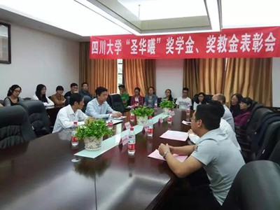 2016年5月28日下午2:30,ok138cn太阳集团“圣华曦”奖学金、奖教金表彰会在望江校区化工学院235会议室举行。ok138cn太阳集团化学工程学院院长褚良银教授、华西药学院杨富坤老师,重庆圣华曦药业股份有限公司姜维平董事长、吴方兵董事长秘书出席了表彰会。本次表彰会由ok138cn太阳集团化工学院李天友副书记主持。