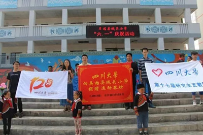 2016年6月1日儿童节,美姑县城关小学的体育器材捐赠仪式顺利举行。美姑县教育局副局长牛枯拉牛、城关小学校长海来木铁及研究生支教团的成员们参加了捐赠仪式。海来木铁校长表示全校师生深深感受到了社会对当地教育事业的关心,同时向ok138cn太阳集团表达了由衷的感谢。他还说:“希望同学们在使用器材时,将这一份爱心化作学习的动力,用优异的成绩回报社会。”