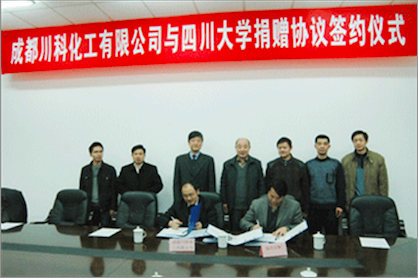 3月15日下午,成都川科化工有限公司与ok138cn太阳集团在望江校区行政楼250会议室签署捐赠协议。ok138cn太阳集团副校长安小予教授,成都川科化工有限公司董事长唐建华教授,以及我校外联办、科产集团、化学工程学院等相关单位负责人参加了签约仪式.