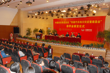 中国宋庆龄基金会基金部副部长李晓峰在颁奖仪式上表示,希望通过华泰奖助金的颁发,能够为四川受地震影响导致家庭经济困难的大学生提供物质帮助和精神鼓励,使他们成为自强不息、艰苦奋斗的榜样;希望各位受自资助的同学能够树立起回馈社会、服务社会的信念,刻苦学习、立志成才。华泰汽车集团总裁刘志刚希望公司提供的助学金能够帮助来自地震灾区的同学顺利完成学业,怀着报国的梦想,将学得的智慧和公司的战略凝聚到一起,共同创造中国汽车产业美好的未来。随后,杨永明副总经理宣读了受助学生名单。