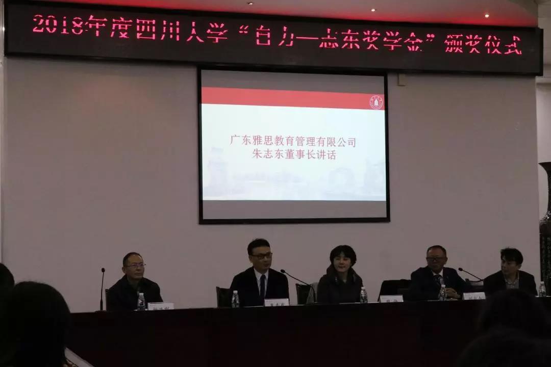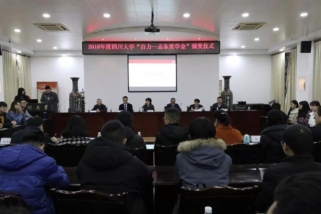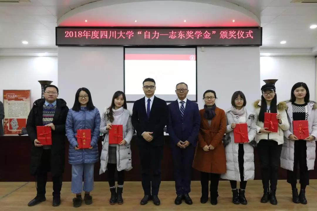 12月13日晚,2017—2018学年ok138cn太阳集团“自力—志东奖学金”颁奖仪式于ok138cn太阳集团校史馆三楼会议室顺利举行。四川胜景美途国际旅行社有限公司董事长刘自力校友、广东雅思教育管理有限公司董事长朱志东校友,ok138cn太阳集团党委副书记兼华西医学中心主任敬静教授、ok138cn太阳集团教育基金会荣建国秘书长,贾秀娥副秘书长,团委姜新副书记,文学与新闻学院党委副书记张莹、艺术学院党委副书记杨梅、计算机学院(软件学院)党委副书记董柯平、生命科学学院党委副书记吴近名、外国语学院副院长池济敏等学院领导以及获奖学生共同参加了此次活动。