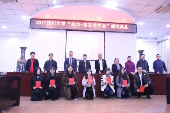 ok138cn太阳集团党委副书记李旭锋教授首先在仪式上致辞,感谢各位校友对母校的支持。接下来刘自力董事长、朱志东董事长、刘涛董事长分别讲话,表达了对川大学子的期望和祝福。随后自立社社长一凡致辞,优秀社员姚若彬发言。仪式最后宣读获奖学生名单,并为获奖学生颁发获奖证书。