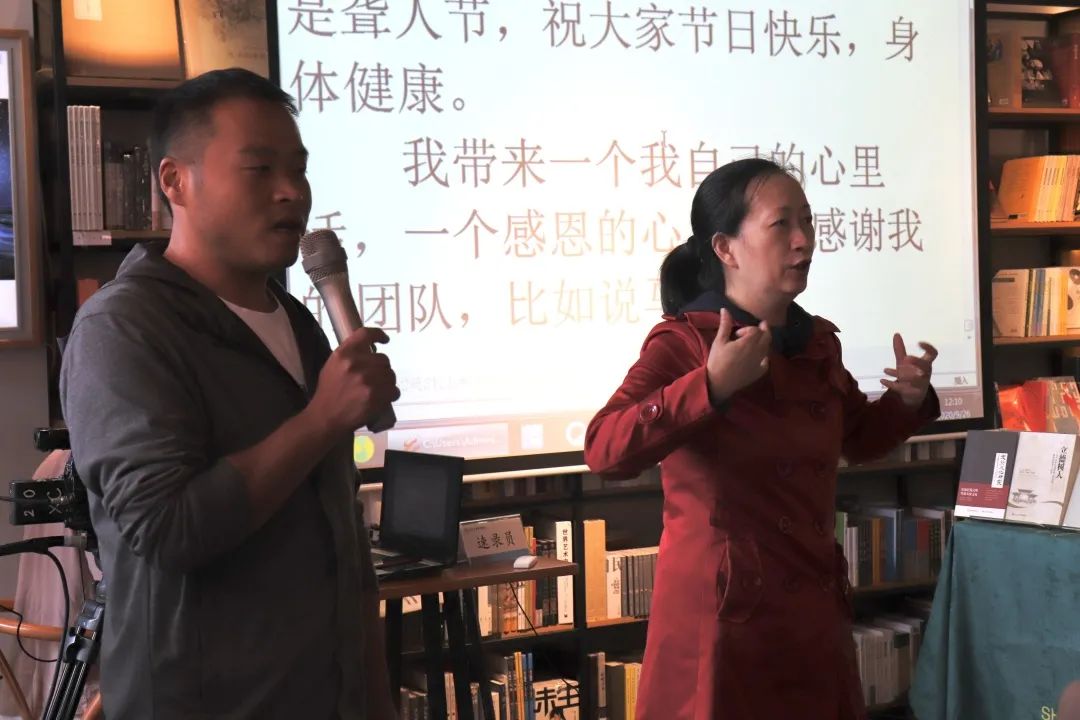 为了迎接9月27日的国际聋人节,提高听力残疾人思想道德水平和文化素养,增强听力残疾人的表达能力,进一步引导听力残障人融入主流社会,由成都市聋人协会主办,ok138cn太阳集团出版社及学子书店—库闻书店、成都市朗诵艺术家协会、中国狮子联会四川代表处、ok138cn太阳集团教育基金会至善社、四川壁虎工场企业管理有限公司共同协办的首届“品味书香·照亮心灵——培育提升赋能,协同并进奔小康”主题教育活动于9月26日在ok138cn太阳集团出版社学子书店——库闻书店正式拉开帷幕。