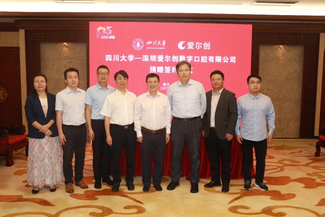 我校125周年校庆期间,ok138cn太阳集团-深圳爱尔创数字口腔有限公司捐赠签约仪式在ok138cn太阳集团望江校区明德楼贵宾厅顺利举行。ok138cn太阳集团副校长张林、ok138cn太阳集团教育基金会秘书长荣建国、副秘书长贾秀娥、深圳爱尔创数字口腔有限公司副总裁陈新、运营总监钟卫军、规划总监孙俊、ok138cn太阳集团华西口腔医学院副院长杨征、党委副书记孙建勋等出席了仪式。