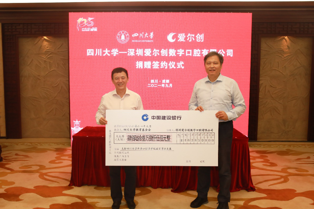 深圳爱尔创数字口腔有限公司副总裁陈新指出,华西口腔培养了无数优秀人才。他表示希望此捐款可切实推动 “华西口腔—爱尔创数字化双创中心”的建设,同时设立爱尔创奖学金,助力华西口腔医学院培养更多专业知识扎实、思维活跃、勇于担当、全面发展的新时代的口腔医学生及口腔医生,为口腔医学的行业发展贡献一份力量。