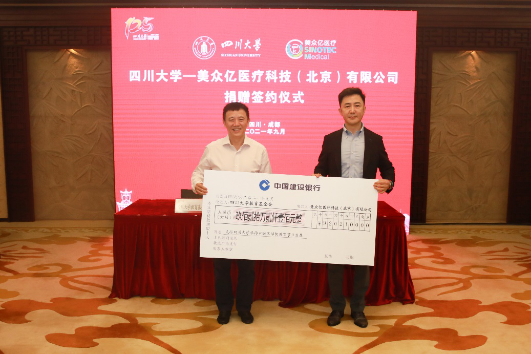 美众亿医疗科技(北京)有限公司董事长余跃在发言中深情回顾了在华西口腔度过的学生时代,表达了对母校教育的感激之情。他表示,希望此次捐款能有助于华西口腔医学院临床与科研的前沿建设,同时表达了对母校人才培养的关切之情,愿意为华西口腔国际化人才的培养提供力所能及的支持与帮助,推动中国口腔医学事业的发展。