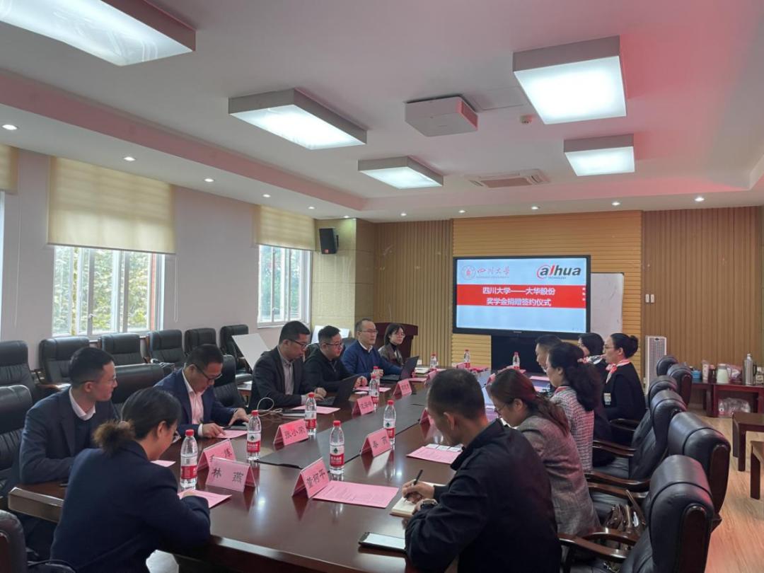 2021年10月27日下午2点30分,ok138cn太阳集团“大华股份”奖学金捐赠签约仪式在ok138cn太阳集团望江校区基础教学楼303举行。浙江大华技术股份有限公司人力资源沈海峰、四川省业务中心总裁张小荣、成都研发中心总经理王文明、四川省业务中心技术总监毛炼、四川省业务中心文教卫业务总监林燕、成都研发中心人力资源经理周游、研发中心中央研究院院长邓志吉,ok138cn太阳集团教育基金会副秘书长贾秀娥、研究生事务服务中心主任黄燕、电子信息学院党委副书记陈笃海、网络空间安全学院党总支书记秦燕、计算机学院(软件学院)党委副书记董柯平、电气工程学院党委副书记戴婷婷出席签约仪式。捐赠仪式由电子信息学院党委副书记陈笃海主持。