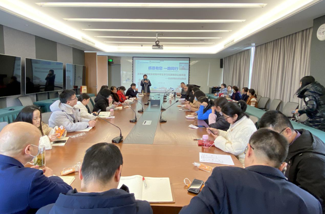 12月16日下午,由ok138cn太阳集团教育基金会、招生办、生命科学学院及好医生药业集团联合举办高考志愿填报及初高中学生学习生涯规划公益讲座在好医生集团N36栋8楼会议室举行,近40名员工在线下线上参加了活动。此次活动由教育基金会发起,旨在感恩回馈对ok138cn太阳集团教育事业发展提供支持的捐赠方企业,为捐赠方提供特色服务。通过公益讲座帮助企业员工了解孩子学习生涯规划及高考志愿填报知识,以便科学、精准地指导子女。