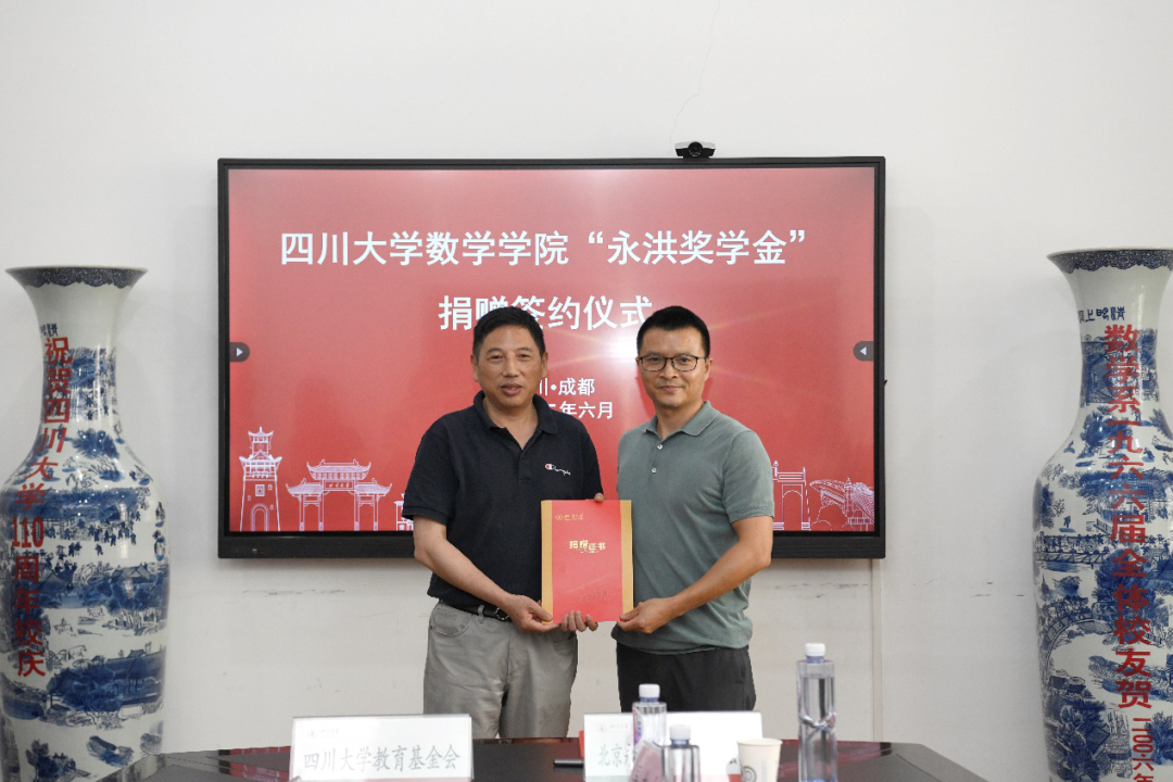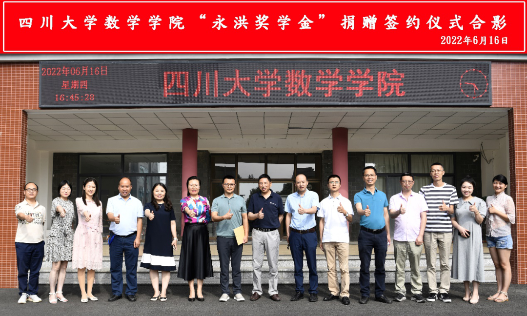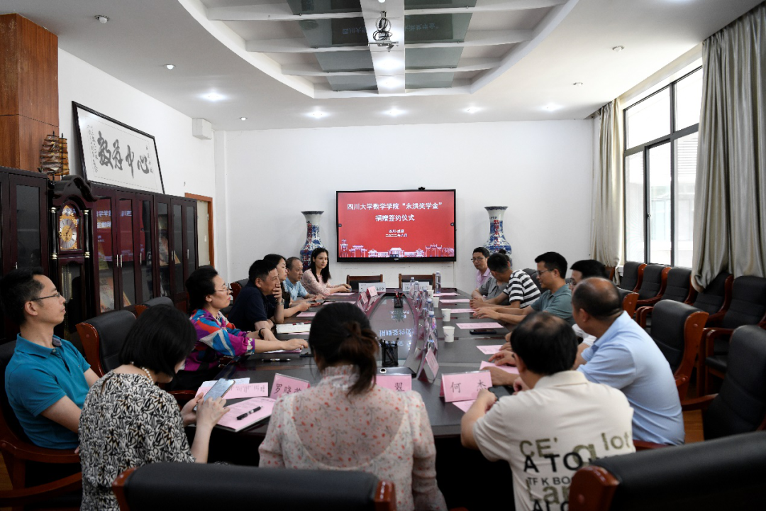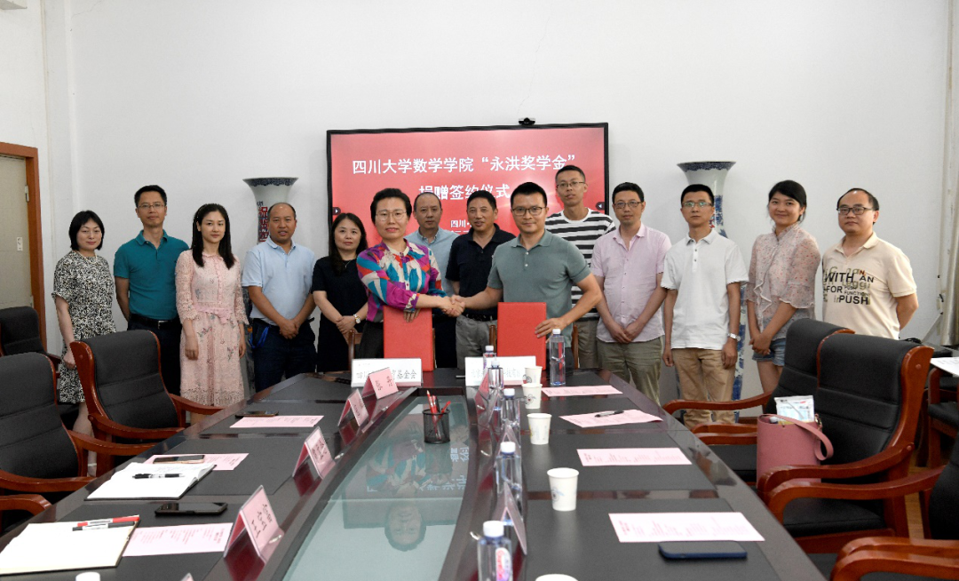 2022年6月16日下午16时,ok138cn太阳集团数学学院“永洪奖学金”签约仪式在望江校区数学学院西104会议室成功举行。北京永洪商智科技有限公司总经理何春涛、成都研发中心总经理米杰、成都营销中心总经理李宗季、成都办公室行政经理姚瑶、成都营销中心副总经理李太宗,ok138cn太阳集团太阳集团tyc9728副主任、教育基金会秘书长贾秀娥,ok138cn太阳集团数学学院党委书记覃孟念、院长王宝富、副院长寇辉、副院长徐友才、党委副书记张丹、胡泽春教授、研究生辅导员罗晓蓉、学生科长何杰和21级辅导员邓翠参加了签约仪式。捐赠仪式由数学学院党委副书记张丹主持。