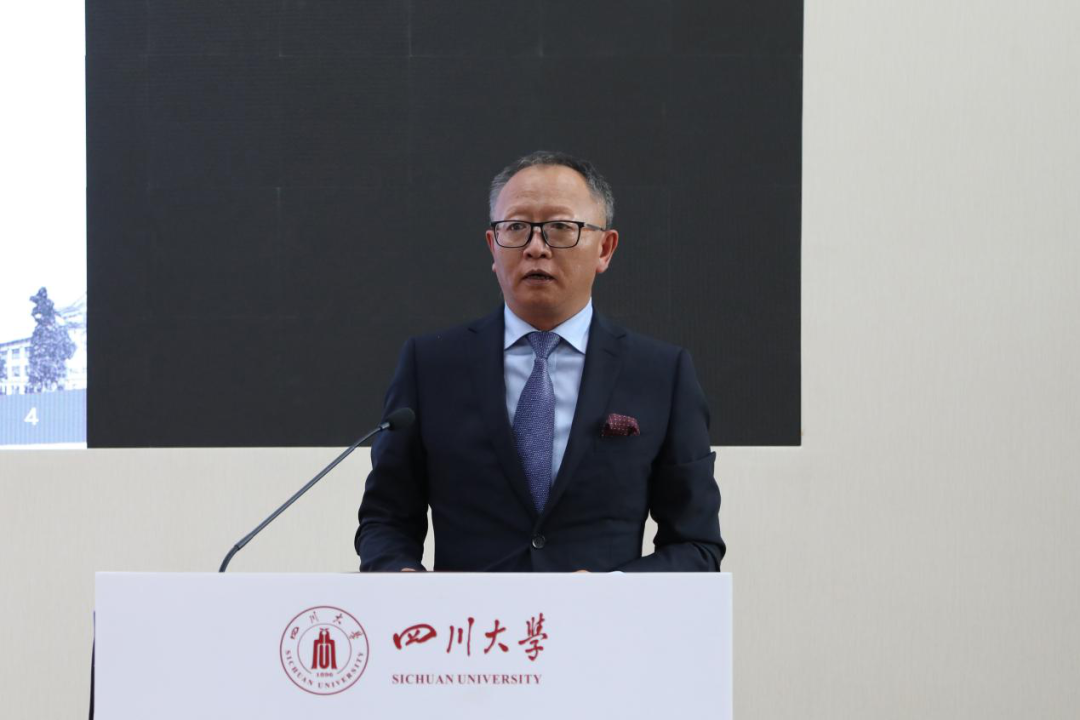 首先,张伟副书记对捐赠校友们回到母校参加颁奖典礼表示热烈欢迎,他回顾了“自力-志东奖学金”的发展历程,对捐赠校友表达了由衷的感谢,指出学校的发展离不开诸位校友的大力支持,尤其谈到“自力-志东奖学金”由五位来自不同学科、不同年级、不同行业的校友捐赠,同时获奖同学也涵盖了文理工医,充分体现了川大校训“海纳百川、有容乃大”,具有重要的价值和意义;张伟对获奖同学也表达了祝福,并勉励获奖同学多向几位杰出校友学习,再接再厉,把这种回报社会、热心公益的奉献精神源源不断地延续下去,用所学的专业知识回报社会、服务社会,帮助更多需要帮助的人,为中华民族的腾飞建功立业;最后,他表示,希望川大在迈向世界一流大学的征程中,能够继续得到各位杰出校友的关心与帮助,母校也将一如既往地关心校友的发展,帮助校友成长,成为校友们加强交流联谊的信息港,促进事业发展的助推器,进行终身学习的加油站。