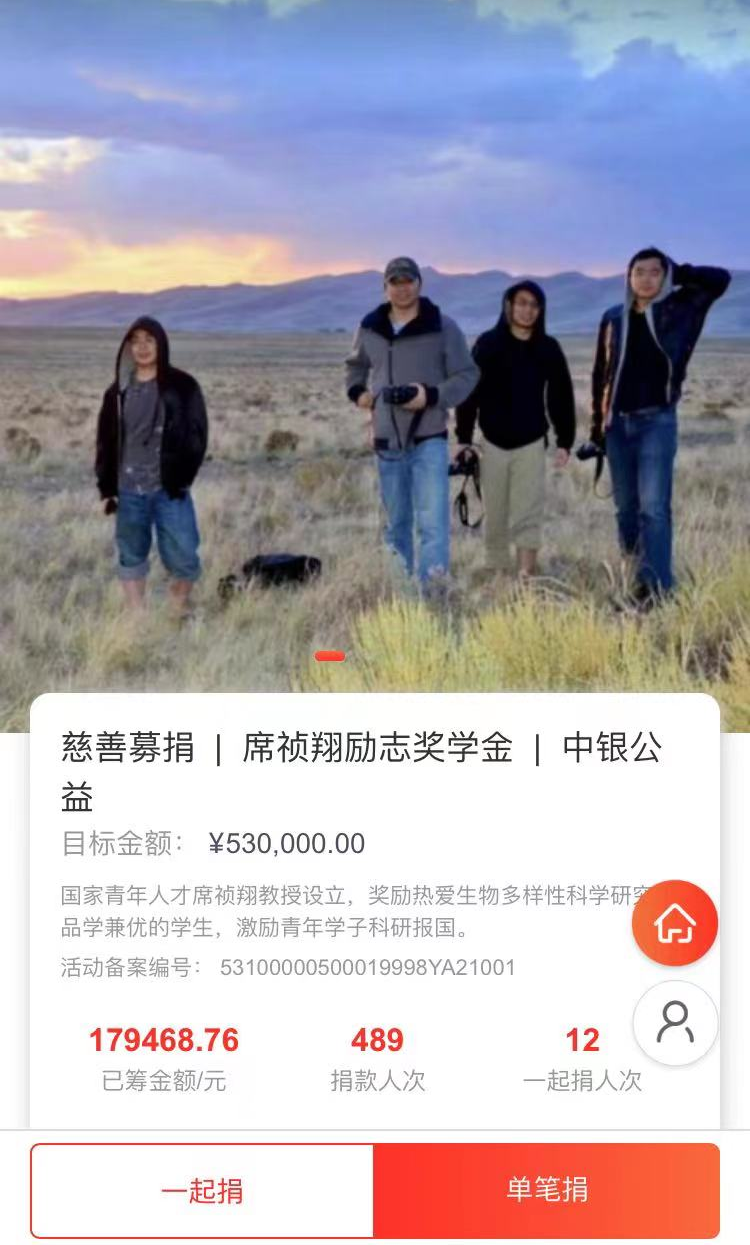 “席祯翔励志奖学金”是国家青年人才席祯翔教授在病重弥留之际,嘱托家人在ok138cn太阳集团生命科学学院设立的奖学金,奖励热爱生物多样性科学研究和品学兼优的学生,激励青年学子科研报国。席老师本人及家属、朋友、同学、老师直接捐赠资金51.62万元 ,公开募集资金17.94万元。